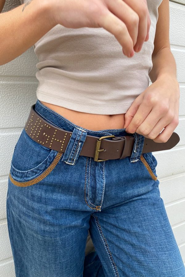 Cintura in ecopelle, con borchie Up all night, chiusura con fibbia, con passanti, lunghezza regolabile.