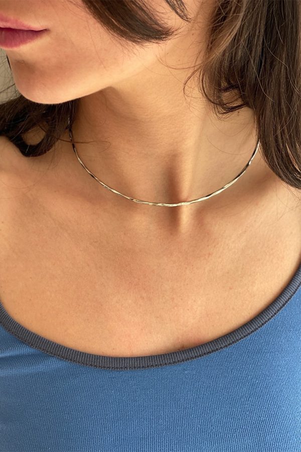 Collana rigida, modello a cerchio, lunghezza regolabile con moschettone.