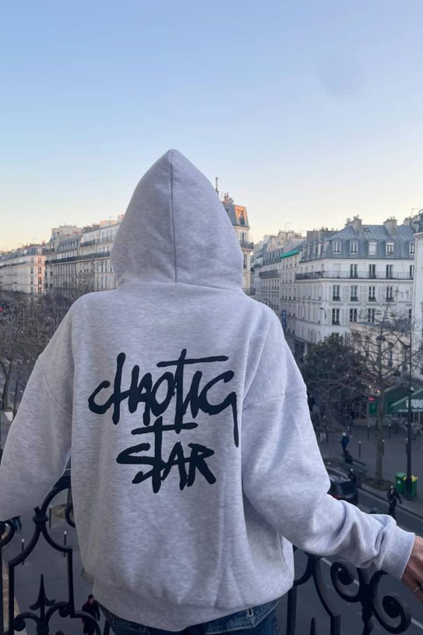 Felpa con stampa, con cappuccio, tasche frontali, maniche lunghe, lunghezza lunga, vestibilità comoda.