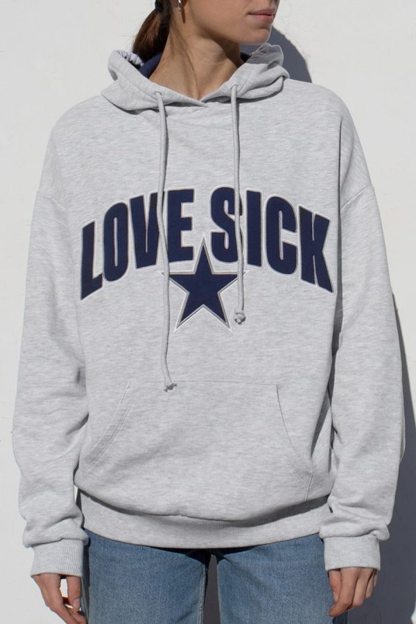 Felpa con ricamo Love Sick, con cappuccio, tasche frontali, maniche lunghe, lunghezza lunga, vestibilità comoda.