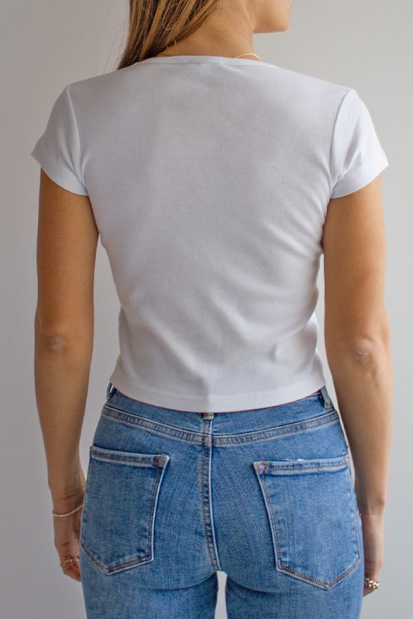 T-shirt con stampa Angel Face, girocollo, maniche corte, lunghezza regolare, vestibilità comoda.