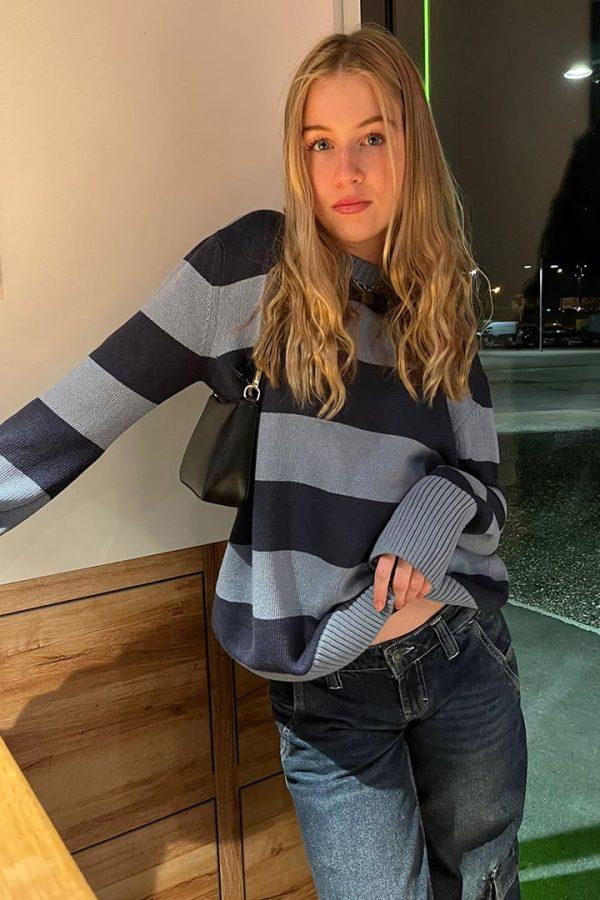 Maglione oversize, girocollo, maniche lunghe, lunghezza lunga, vestibilità comoda.