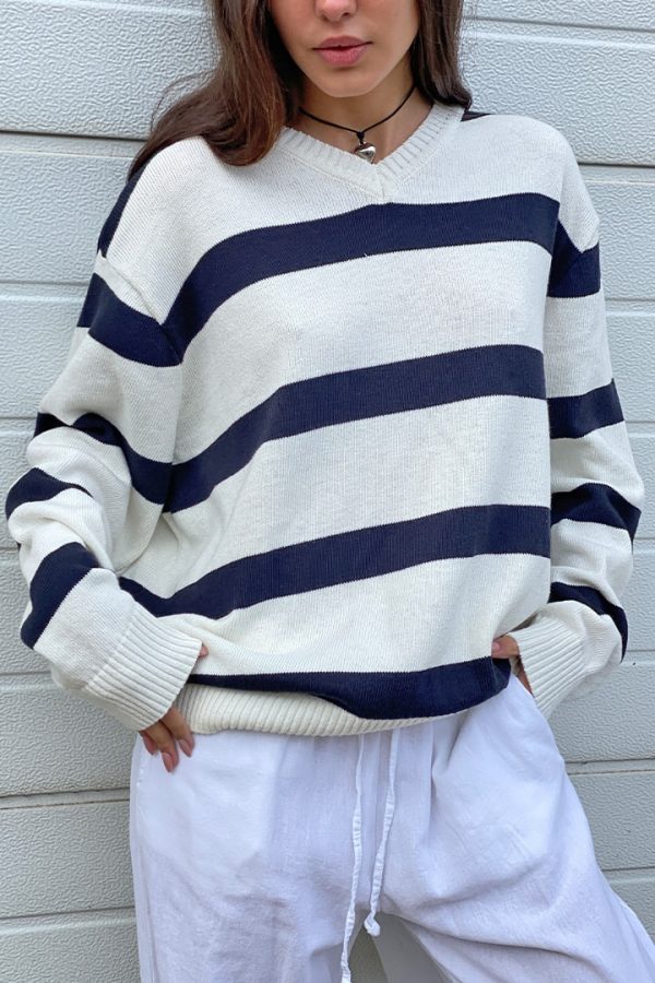 Maglione scollo a V, maniche lunghe, lunghezza regolare, vestibilità comoda.