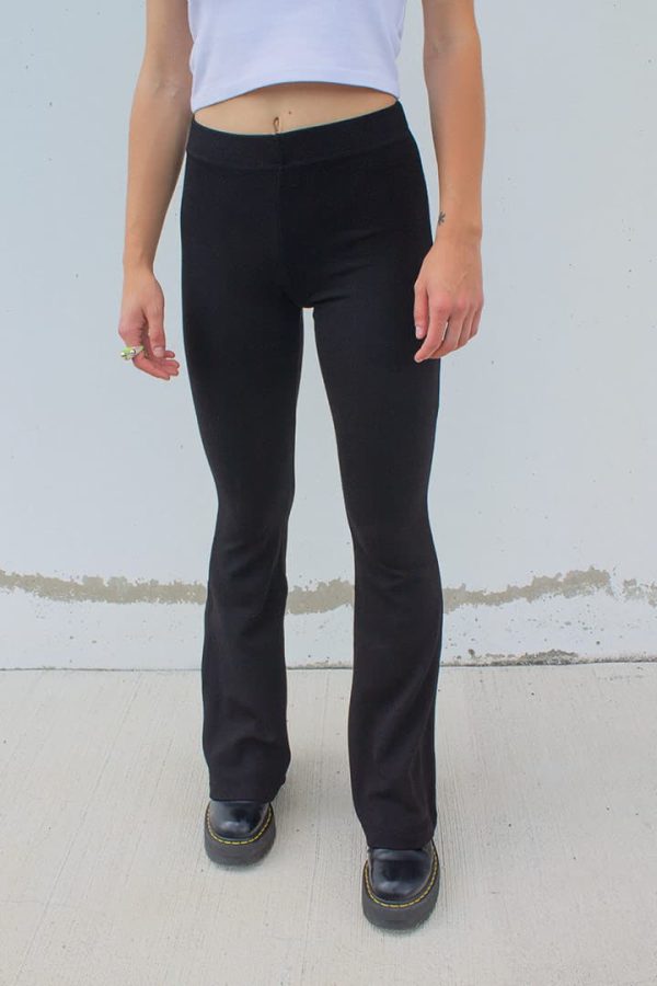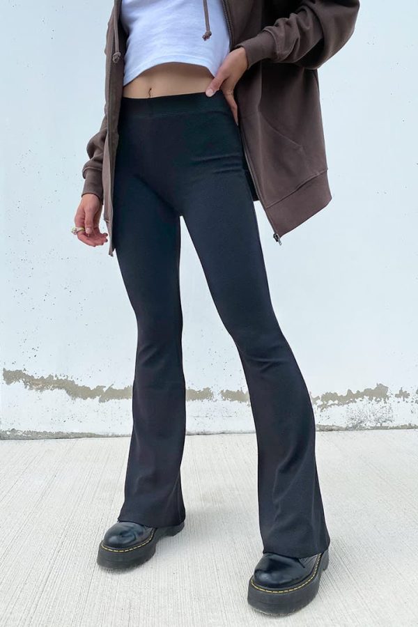 Pantaloni a zampa, vita alta, senza tasche, vestibilità slim.