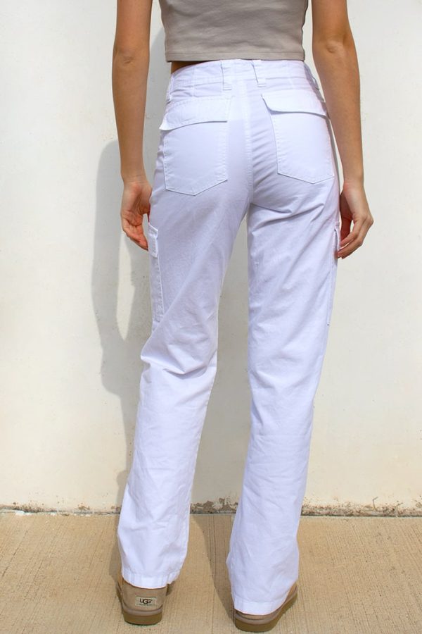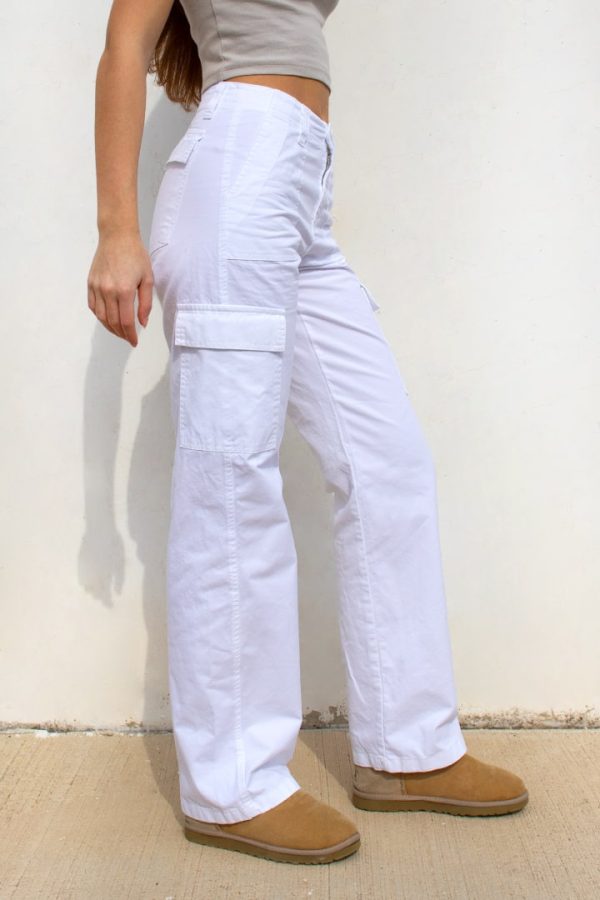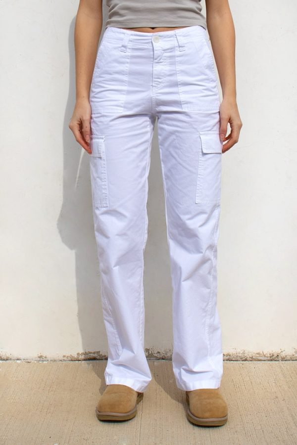 Pantaloni cargo, chiusura con zip e bottone, passanti per cintura, tasche laterali, lunghezza regolare, vestibilità comoda.