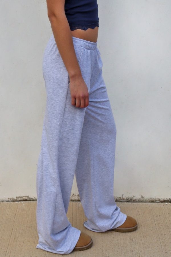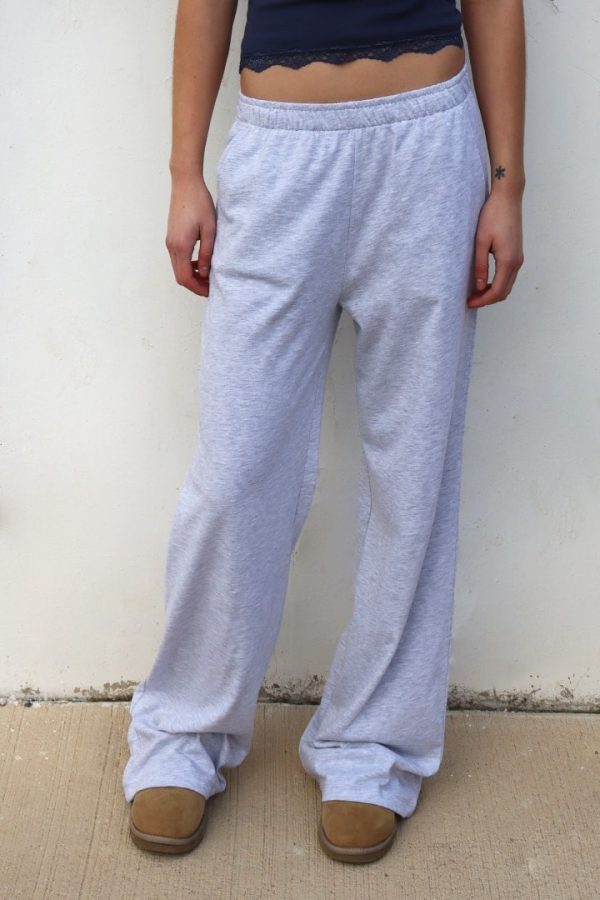 Pantaloni tuta, vita elasticizzata, modello a palazzo, lunghezza lunga, vestibilità comoda.